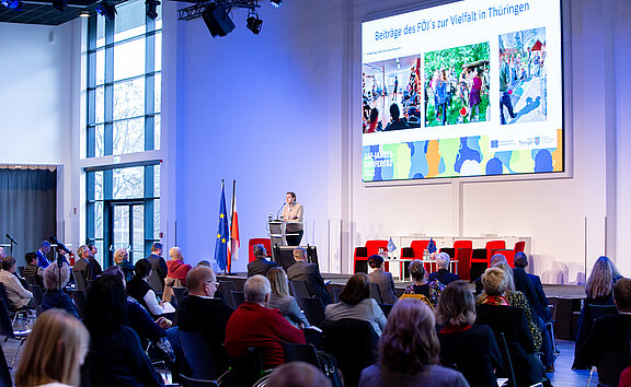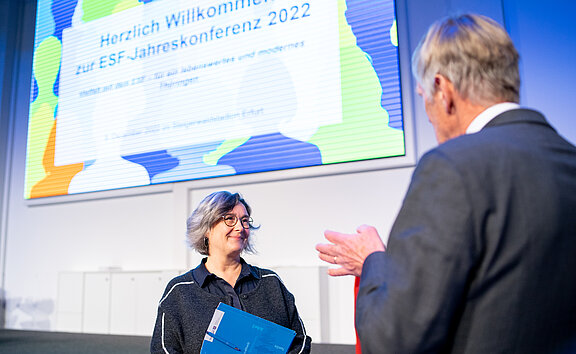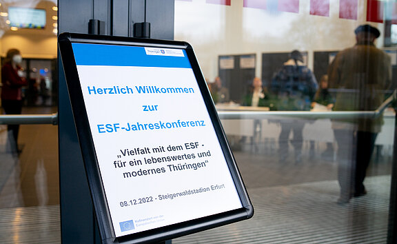 Am 8. Dezember 2022 fand im Steigerwaldstadion Erfurt die Thüringer ESF-Jahreskonferenz 2022 mit rund 200 Teilnehmerinnen und Teilnehmern statt. Die Veranstaltung stand unter dem Motto „Vielfalt mit dem ESF – für ein lebenswertes und modernes Thüringen“.